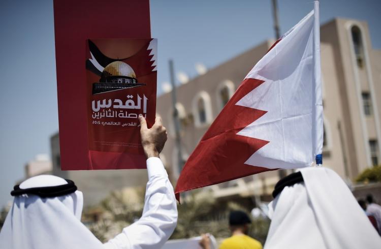 Tens of Bahrainis participated in a protest against normalization with the Israeli occupation and the first ‘Israeli’ delegation’s visit to Manama, the capital of Bahrain. The protestors waved the Bahraini and Palestinian flags along with other banners against the normalization agreement between their country and the occupation’s entity.